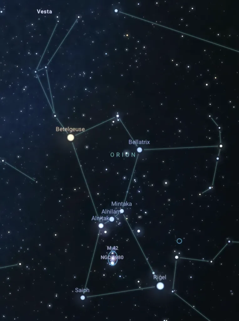 Ο Μπετελκέζ (πάνω αριστερά στο τραπέζιο του Ωρίωνα) είναι μεταβλητός αστέρας —η φωτεινότητά του αλλάζει με τον χρόνο. Υπάρχει μια αρκετά κατανοητή περίοδος 400 ημερών (λόγω εσωτερικών διεργασιών) και μία παράξενη 2.000 ημερών που είναι δύσκολο να εξηγηθεί. Ένα δεύτερο αστέρι σε τροχιά κάθε έξι χρόνια είναι μια καλή εξήγηση. Το σύστημα γίνεται πιο φωτεινό όταν το αστέρι είναι ορατό και πιο αμυδρό όταν κρύβεται πίσω από το κύριο άστρο, τον Big Β.
